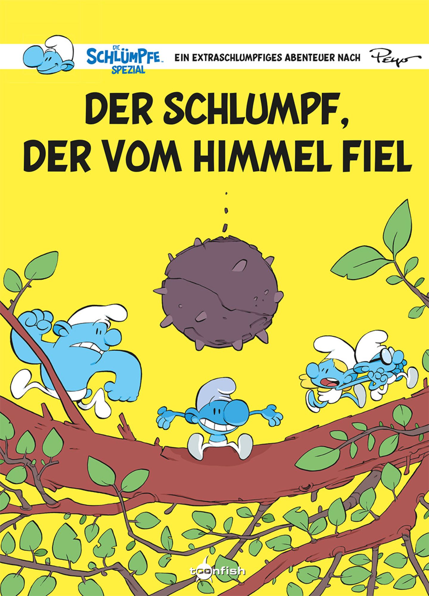Plötzlich purzelt ein Schlumpf vom Himmel ..